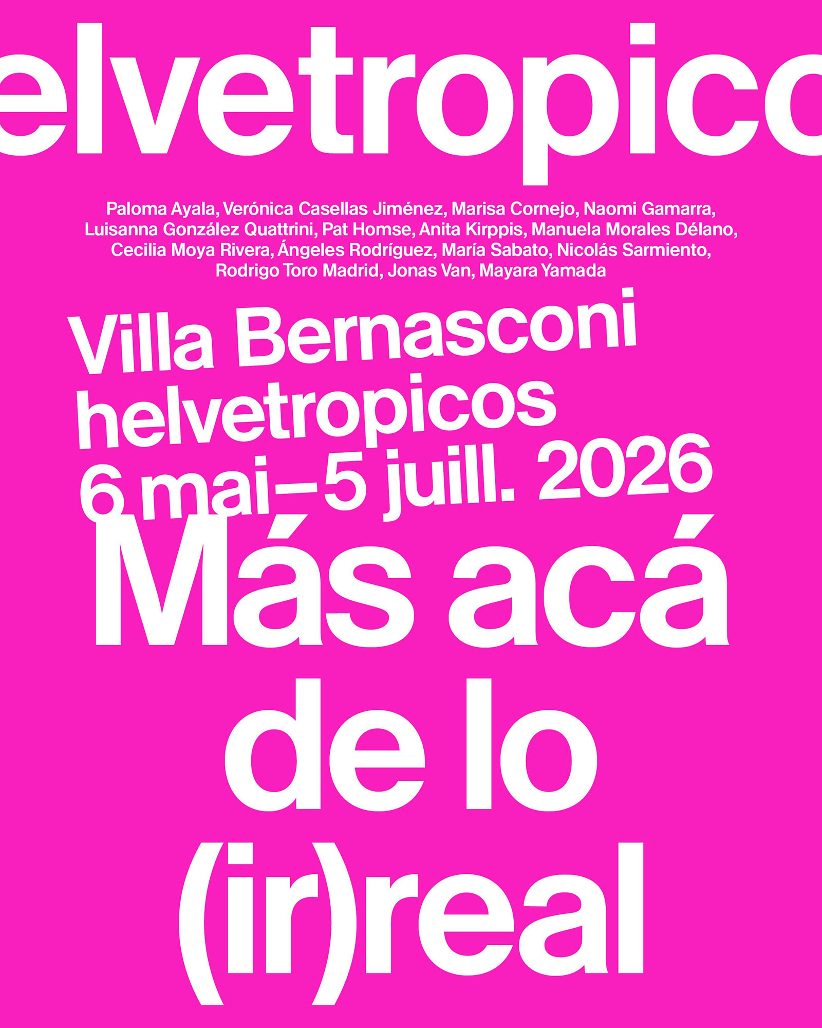 helvetropicos a été lancé en 2022 par Jorge Raka, Verónica Casellas Jiménez et Patricio Gil Flood avec pour objectif de poursuivre les échanges entre les artistes vivant en Suisse qui partagent un lien profond et de cœur avec l’Amérique latine. Au-delà de son rôle d’exercice curatorial, ce projet vise à construire un réseau de collaborations à long terme susceptible d’influencer le paysage artistique dans lequel il évolue.