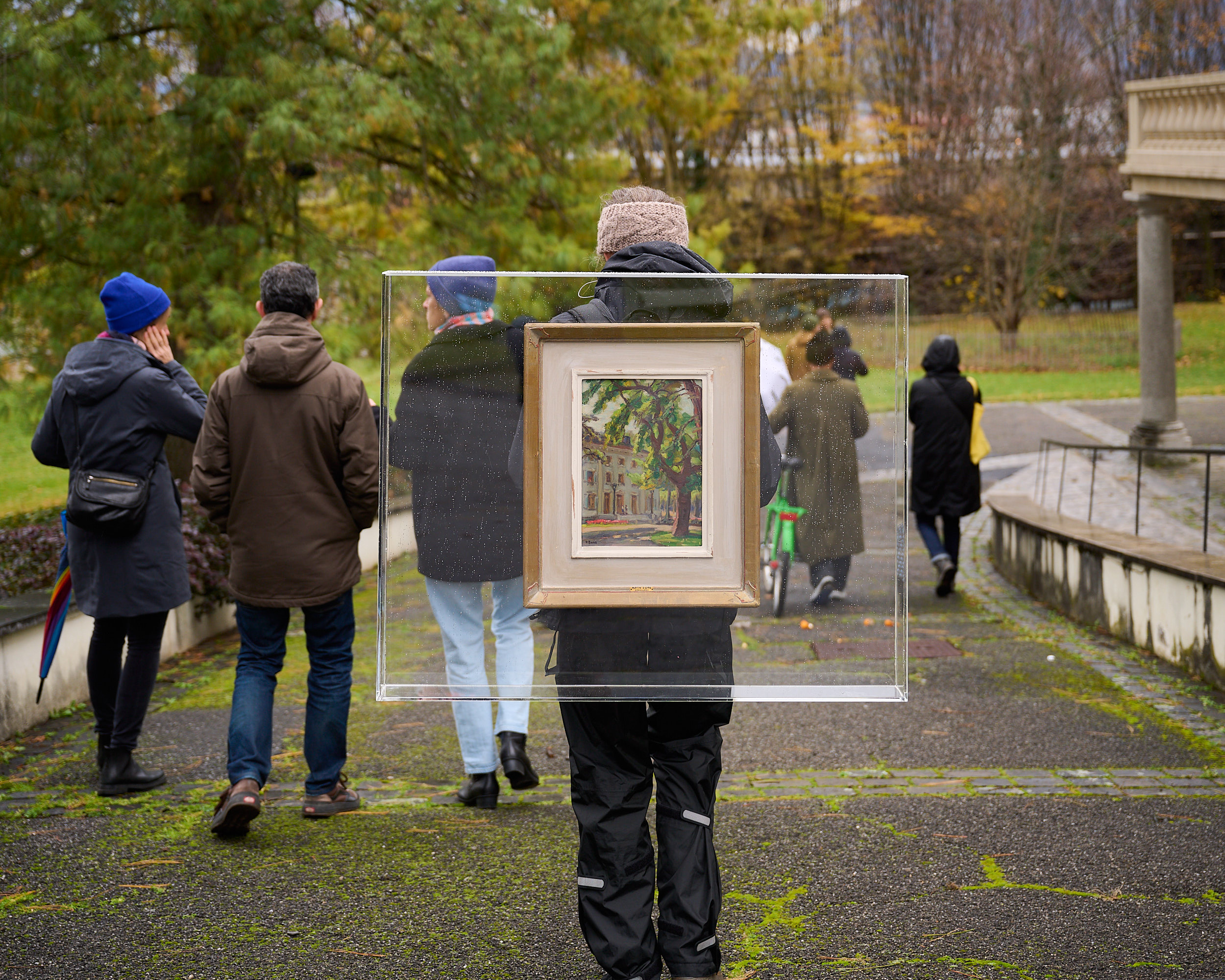 Entre le moment où les tableaux ont été peints et celui où ils sont portés, une histoire du lieu se recompose dans l’imaginaire des participant-es. L’espace urbain devient le cadre mouvant d’un musée à ciel ouvert, où le geste simple de promener une peinture semble faire ressurgir la valeur des choses, des lieux et du temps.